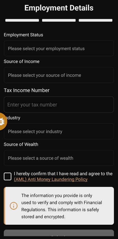 - Read and Check the “Anti Money Laundering Policy (AML)” box