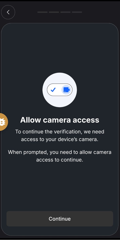 You will now be asked to allow camera access, as a liveliness check will now be done