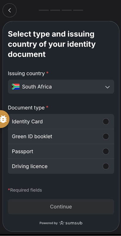 Select type and issuing country of your identity document