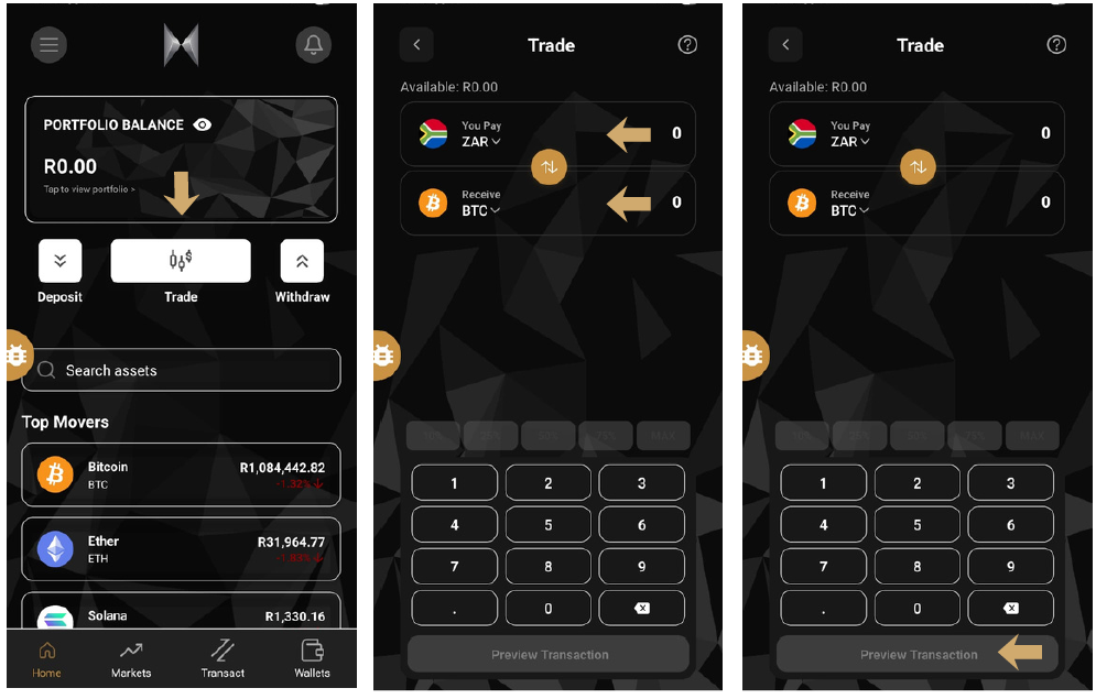 - On the “Trade” screen